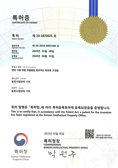 이시스코스메틱은 꾸준한 R&D를 통해 국내외 특허를 다수 확보하고 있습니다.