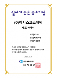 이시스코스메틱, 일하기 좋은 사내문화 정착 '인정'
